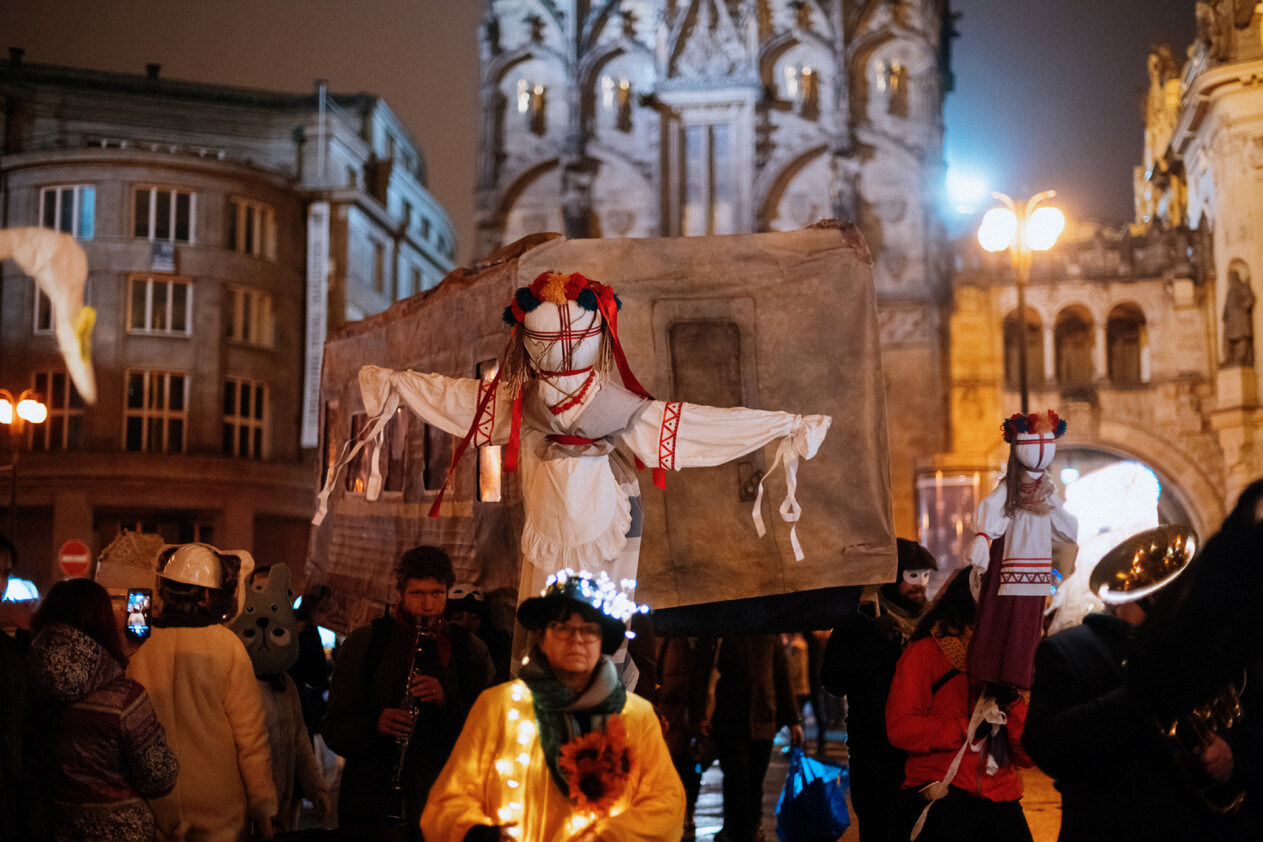 Не зважаючи на таку болісну тематику, парад все ж таки вдалось зробити світлим та обнадійливим. До цього доклали рук майстри та майстрині, які разом з дітьми та дорослими створили костюми та маски величезних іграшок, соняшників, мотанок, будиночків та дивовижних птахів, які сяють. Парад пройшов від Кампи до Вацлаваку, та на кожній зупинці грав величезний перформанс, драматургію якого розробила українська драматургиня та письменниця Оксана Маслова.